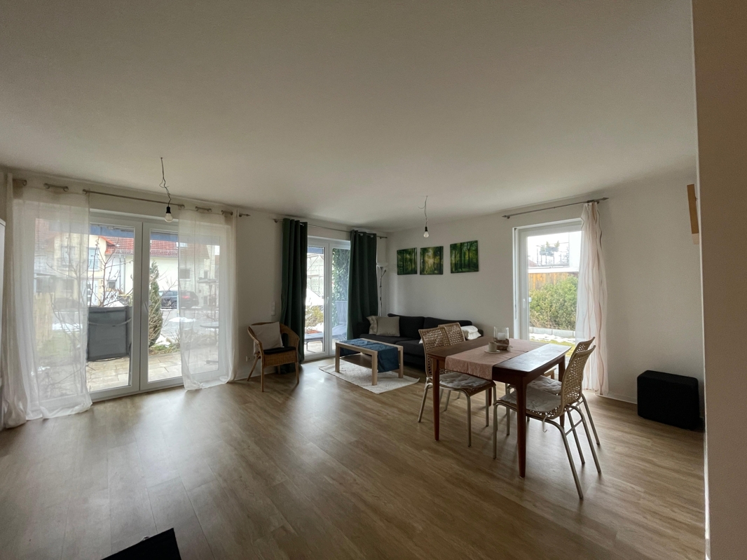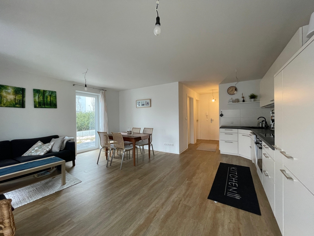 Diese moderne Erdgeschosswohnung in einem Zweifamilienhaus aus dem Baujahr 2019 bietet auf ca. 55 m² Wohnfläche eine durchdachte Raumaufteilung mit kurzen Wegen und hohem Alltagskomfort.Herzstück der Wohnung ist der offen gestaltete Wohn-, Ess- und Küchenbereich. Der klare Zuschnitt ermöglicht eine flexible Möblierung mit Wohnlandschaft und Essplatz. Große Fenster sorgen für viel Tageslicht und führen direkt auf die Terrasse, die den Wohnraum nach außen erweitert und zu entspannten Stunden im Freien einlädt.