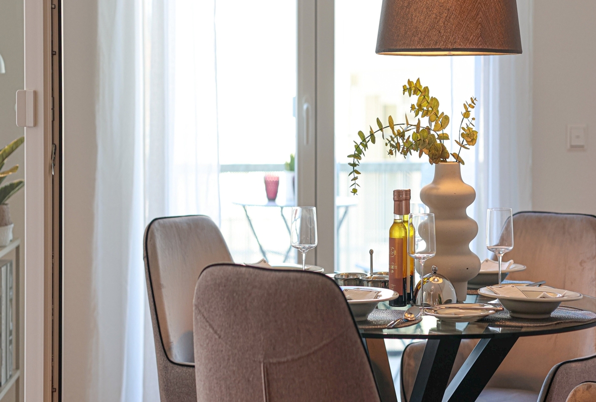 Die hochwertigen und dreifach verglasten Kunststofffenster bieten exzellenten Schallschutz und Energieeffizienz, während elektrische Rollläden Komfort und Sicherheit erhöhen. Bodentiefe Fenster sorgen für viel natürliches Licht und eine einladende Atmosphäre. Einbruchhemmende Wohnungseingangstüren verbessern die Sicherheit.