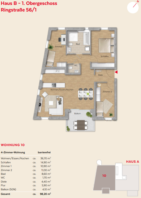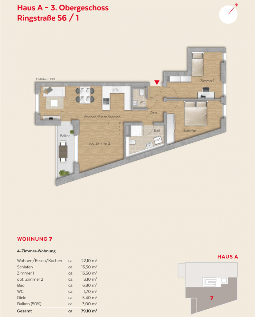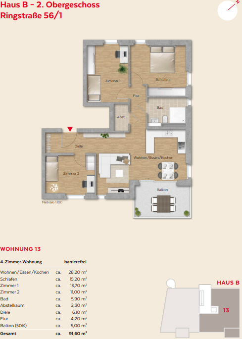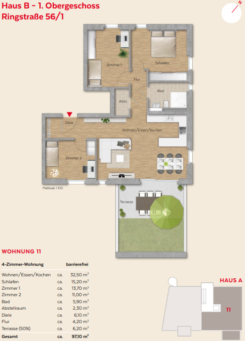 Eine Videosprechanlage am Hauseingang mit Farbmonitor kann als Sonderwunsch integriert werden. Der Aufzug verbindet das Untergeschoss mit dem Dachgeschoss. Ausreichend Außenstellplätze und Doppelparker, die für E-Ladestationen vorbereitet sind, stehen zur Verfügung. Eine große Anzahl an Fahrradstellplätzen ist ebenfalls vorhanden. Zusätzlich bieten Kellerräume sowie separate Räume für Kinderwägen und Gehhilfen praktischen Stauraum.
