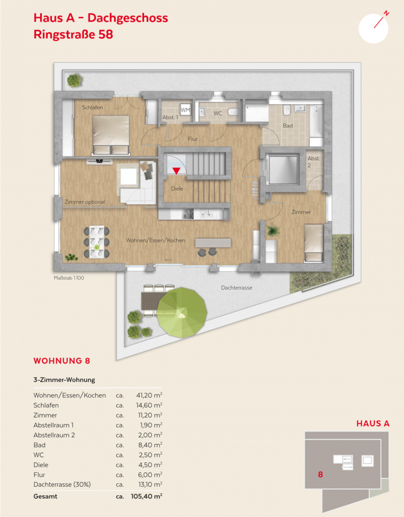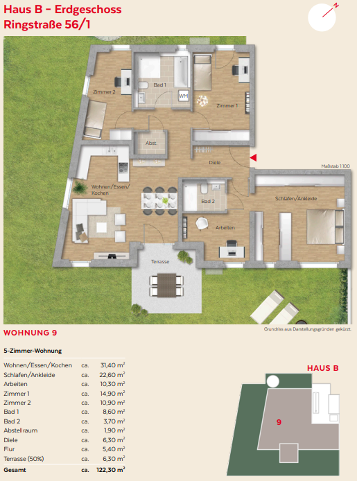 Das umweltfreundliche Fernwärmesystem und die Fußbodenheizung mit elektrischer Einzelraumsteuerung sorgen für behagliche Wärme. Eine PV-Anlage auf dem Dach trägt zur Nachhaltigkeit bei. Hochwertiges Parkett und Sanitärgegenstände namhafter Markenhersteller unterstreichen die erstklassige Ausstattung. Glasierte keramische Wandfliesen im Farbtrend und teilweise Feinsteinzeug-Bodenfliesen im modernen Design setzen stilvolle Akzente.
