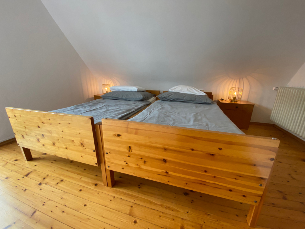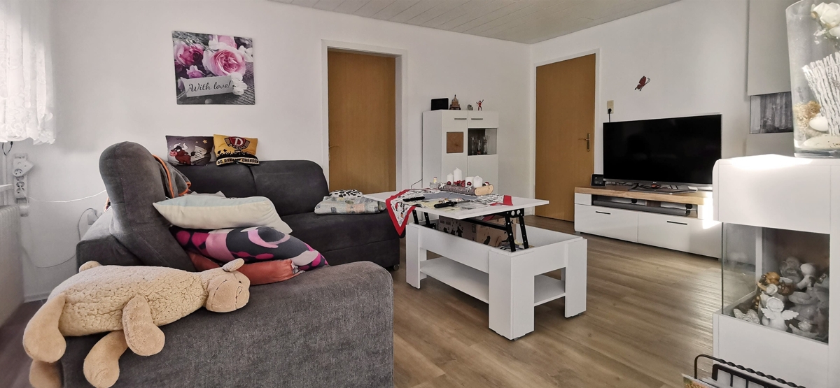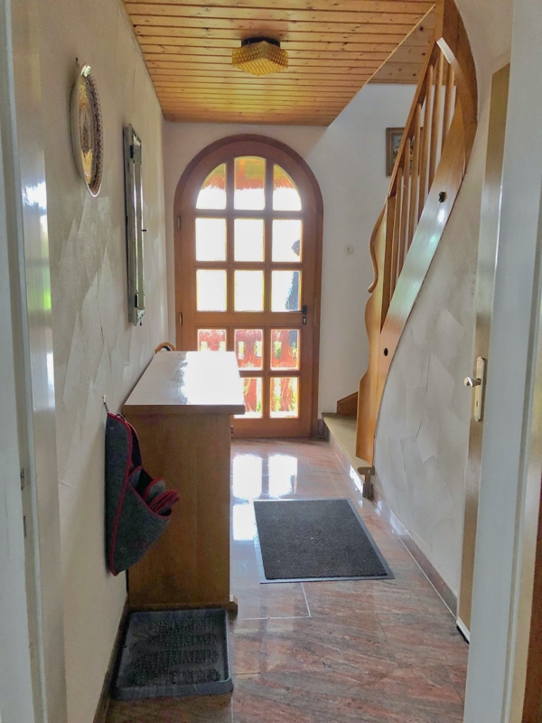Die Wohnfläche ist auf zwei Wohneinheiten aufgeteilt, die sich sowohl für zwei Familien als auch für die Nutzung als Einzelhaus eignen. Große Fenster sorgen für eine helle und freundliche Atmosphäre in den Räumen, die einen angenehmen Blick auf den gut angelegten Garten bieten.