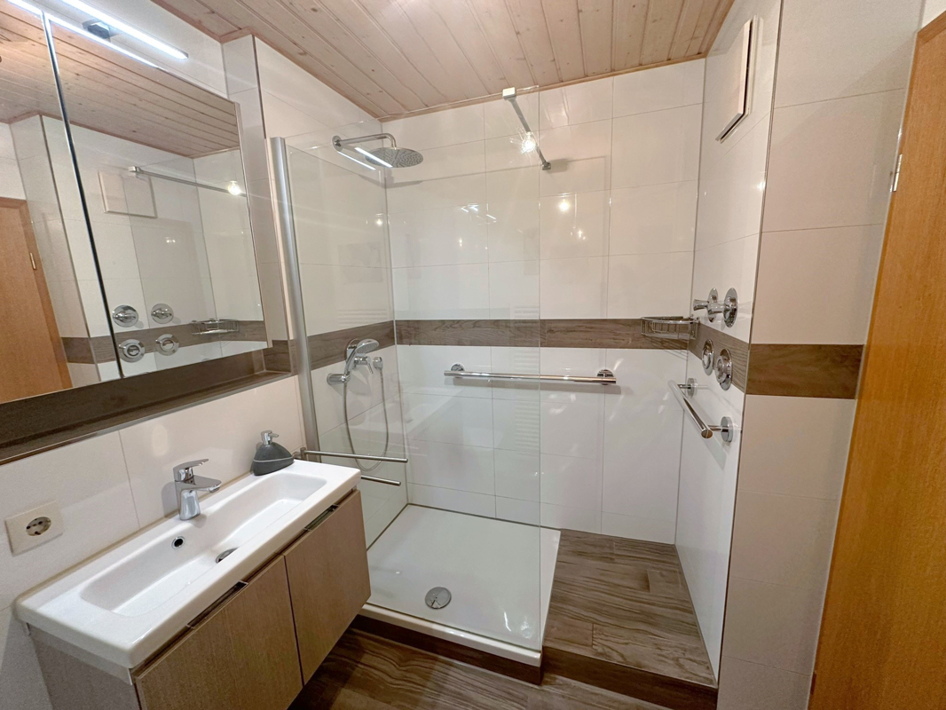 2012 wurde das Badezimmer grundsaniert und bietet mit einer begehbaren Dusche hohen Komfort.