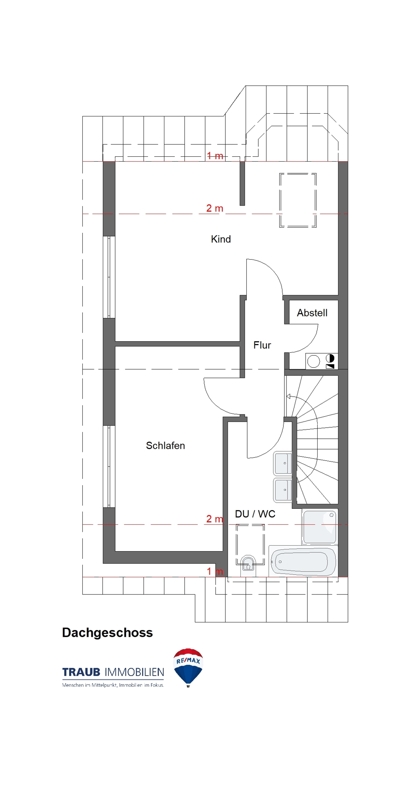 • Obergeschoss: Zwei Schlafzimmer, es besteht die Möglichkeit zur Aufteilung in 3