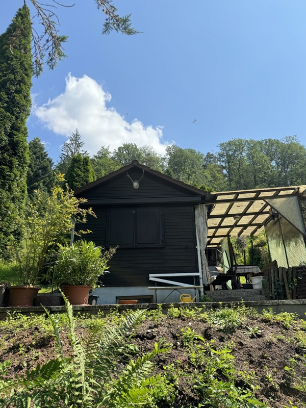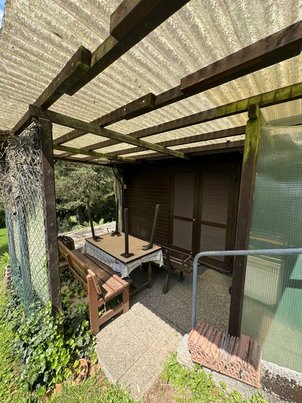 Das Gartenhaus ist auf einem massiven Keller aufgebaut. Zur 12 V und 24 V Stromversorgung wurde eine PV-Anlage installiert. Die große Terrasse wurde 2023 neu verlegt. Unter der Terrasse befindet sich eine 3000 l-Zisterne, die Ihnen genügend Wasser für die Bewässerung ihres Gartens speichert.