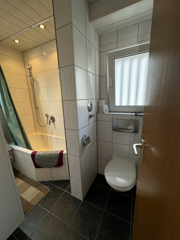 Das Badezimmer mit Badewanne und Fenster wurde im Jahr 2019 erneuert.