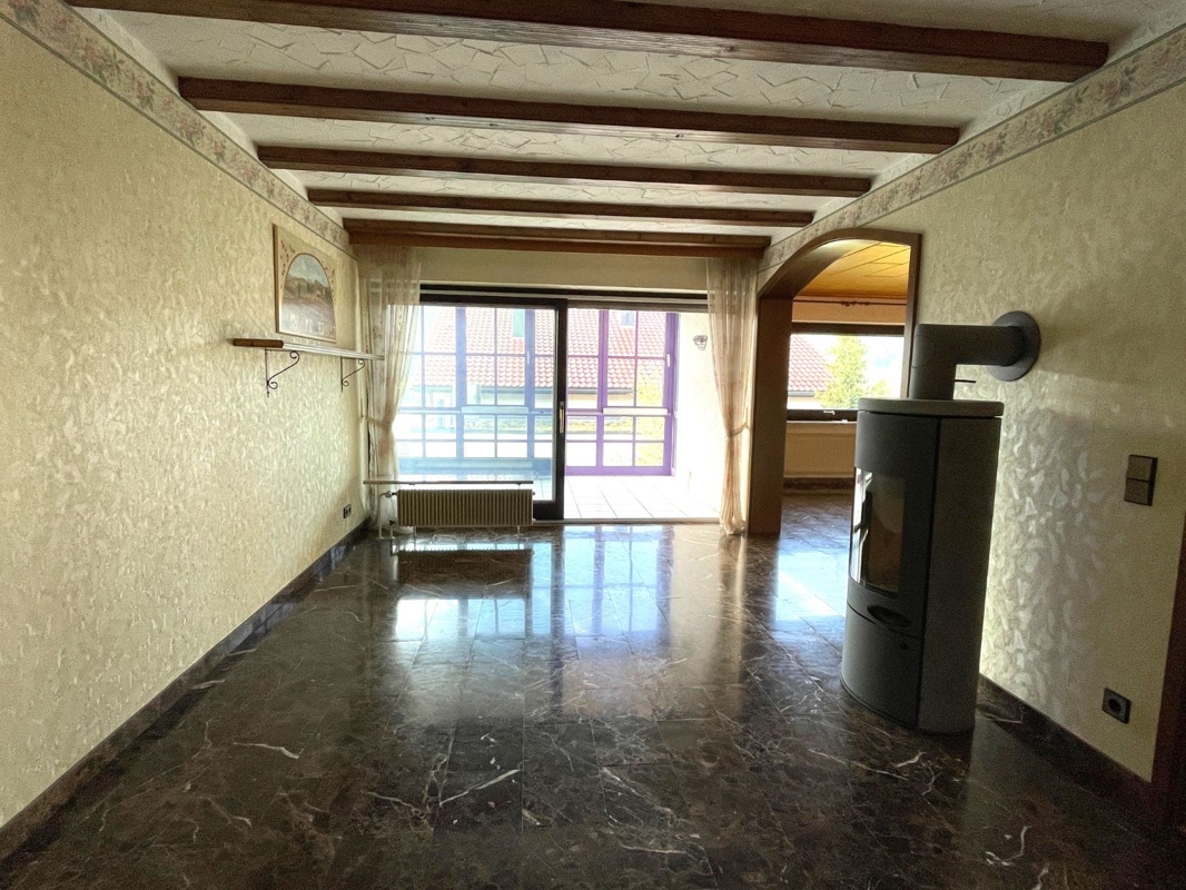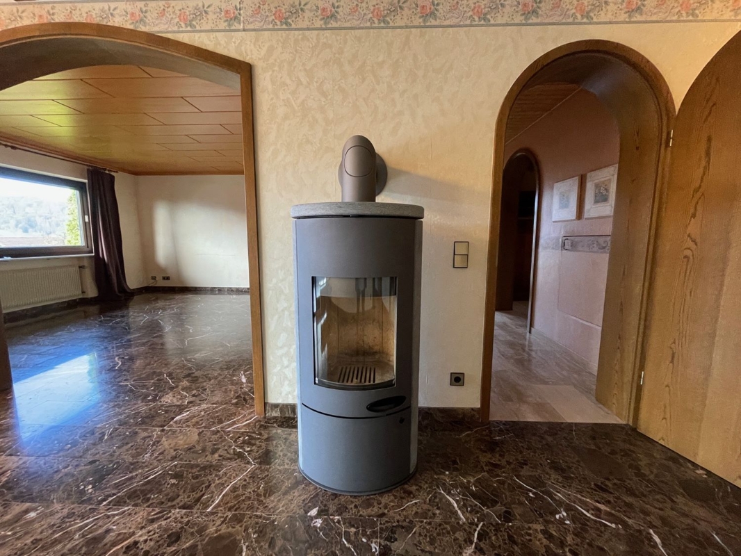Wohn- und Essbereich: Der großzügige, lichtdurchflutete Wohnbereich verbindet sich harmonisch mit dem angrenzenden Esszimmer. Beide Räume sind durch den zentralen Kachelofen aus dem Jahr 2009 miteinander verbunden. Der Ofen spendet behagliche Wärme und sorgt in der kühlen Jahreszeit für eine besonders gemütliche Atmosphäre. Ob beim Entspannen im Wohnzimmer oder beim Essen mit Familie und Freunden – der Kachelofen verleiht dem gesamten Bereich einen heimeligen Charakter.