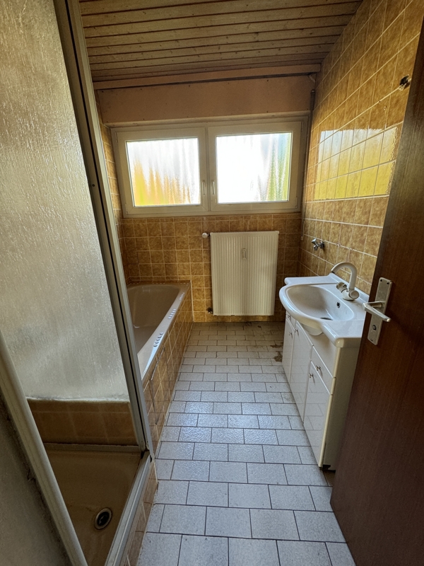 Entdecken Sie dieses Zweifamilienhaus mit großem Grundstück, das sowohl für Eigennutzer als auch für Kapitalanleger attraktive Möglichkeiten bietet.Die obere Wohnung ist eine großzügige, renovierungsbedürftige 5-Zimmer-Wohnung, die Ihnen auf ca.119 m² die Möglichkeit bietet, Ihre eigenen Ideen und Vorstellungen umzusetzen. Beim Betreten der Wohnung gelangen sie in den großen Flur. Von hier aus gelangen sie in alle Räume. Vom ca. 25m² großen Wohnzimmer mit großer Fensterfront haben sie Zugang zum Balkon. Genießen Sie den großzügigen, überdachten Balkon, der zu entspannten Stunden im Freien einlädt und Ihnen eine herrliche Aussicht auf die Umgebung bietet. Vom angrenzenden Esszimmer gelangen sie ebenso auf den Balkon.