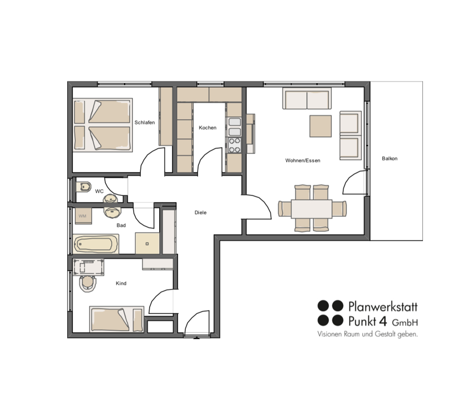 • Ca. 79 m² Wohnfläche• 3 Zimmer: Wohnzimmer, Schlafzimmer, Kinder-/Arbeitszimmer