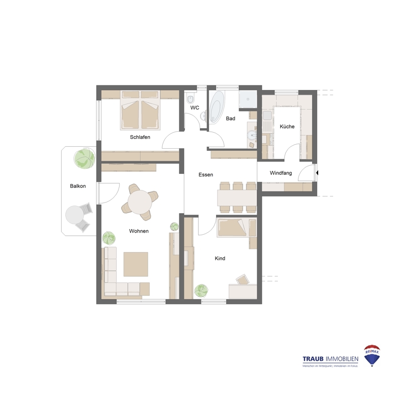 Für Entspannung nach einem langen Arbeitstag sorgt das Tageslichtbad, ausgestattet mit einer Badewanne und einer Dusche. Im Elternschlafzimmer findet sich ausreichend Platz und durch die großzügigen Fensterfronten viel Helligkeit vor. Das Kinderzimmer ist ideal geschnitten und eignet sich auch als HomeOffice Bereich.
