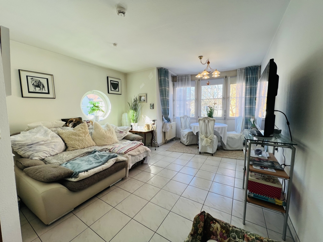 - Heller und einladender Wohnbereich mit großen Fenstern
