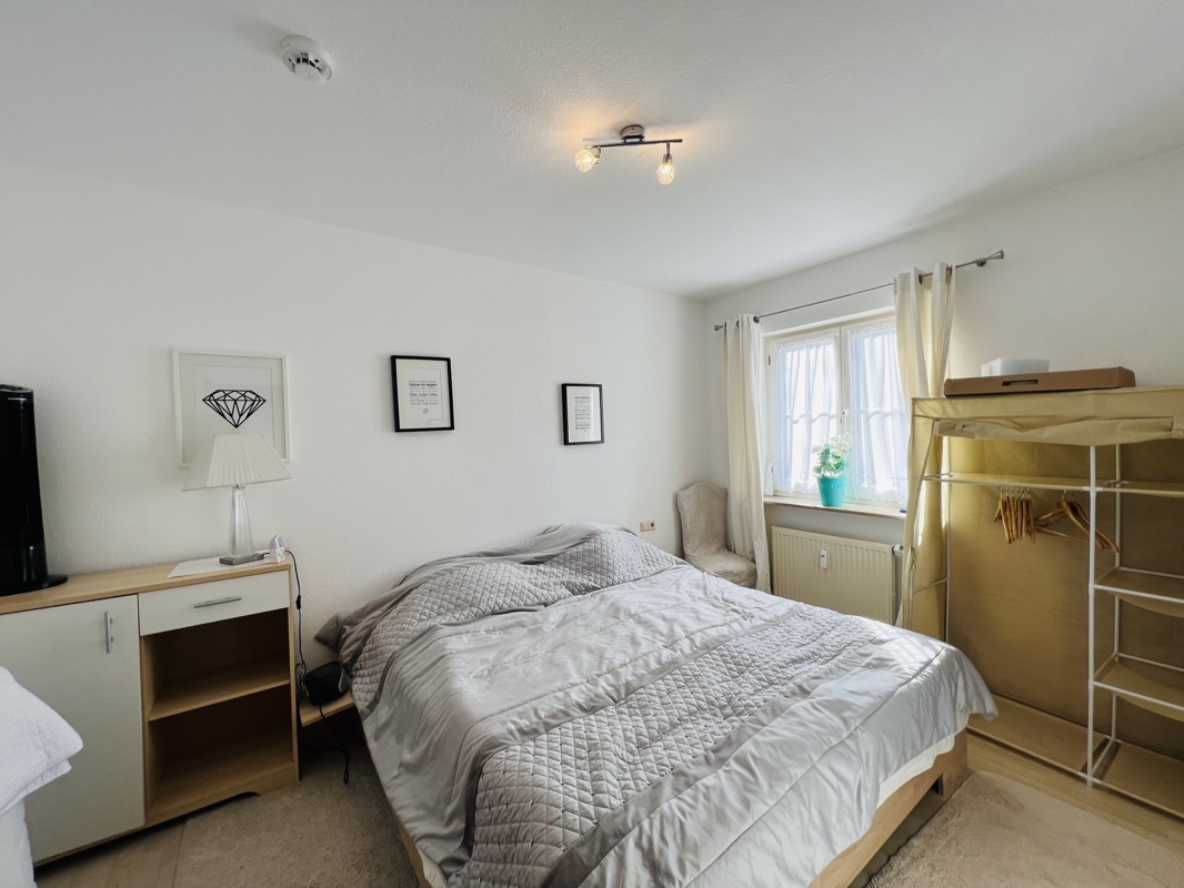Das Schlafzimmer ist geräumig und bietet Ihnen genug Platz für einen erholsamen Schlaf.