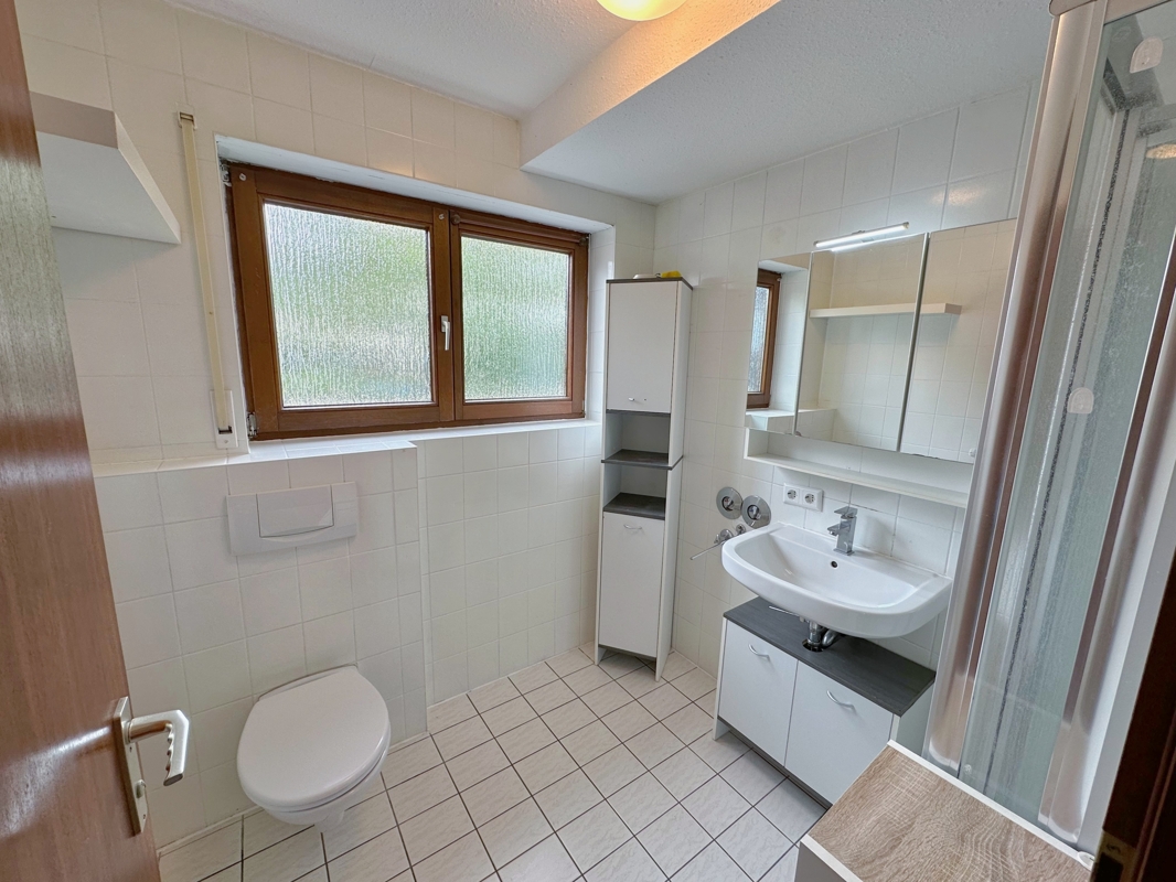 - Tageslichtbad mit Dusche, Waschbecken und Toilette