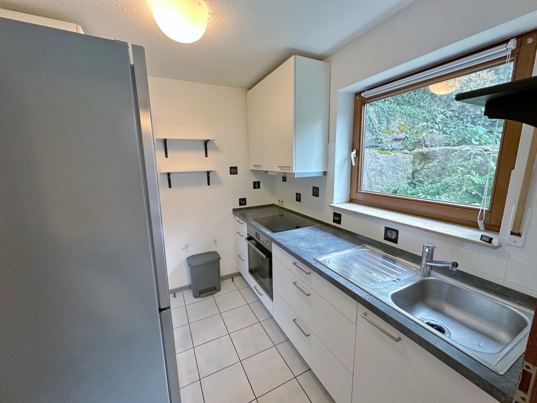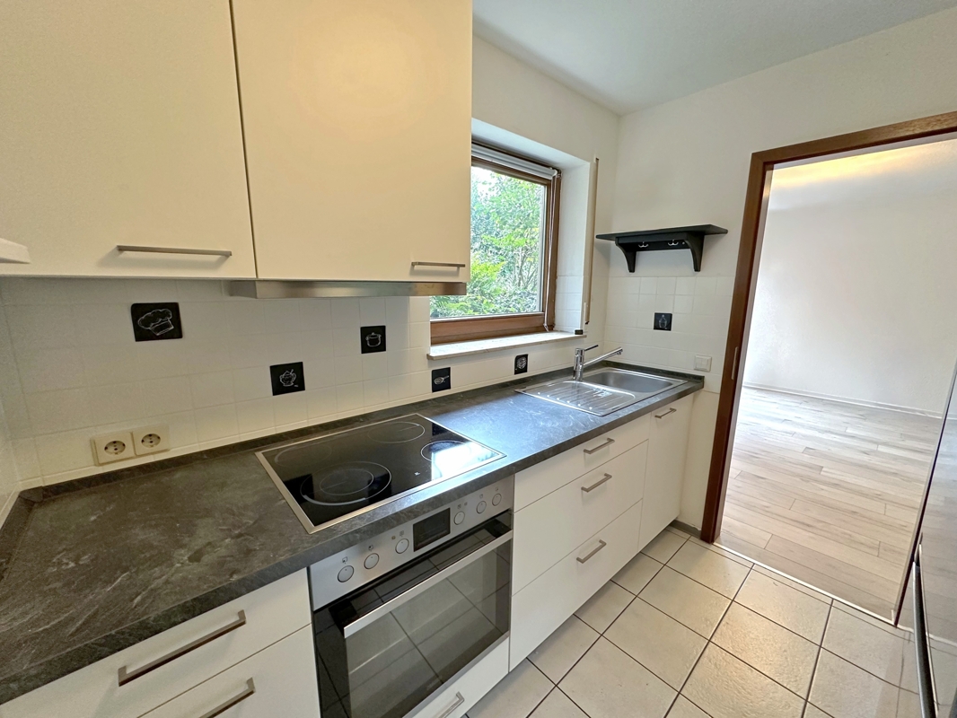 Der helle Wohn- und Essbereich mit direktem Zugang zur eigenen Terrasse bildet das Herzstück der Wohnung und lädt zum Entspannen und Auftanken ein. Die moderne Einbauküche (2020 erneuert) mit separatem Abstellraum macht das Kochen zum Vergnügen.