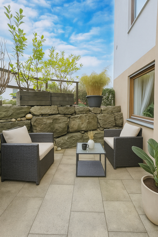 - Terrasse mit Zugang vom Wohn- und Essbereich
