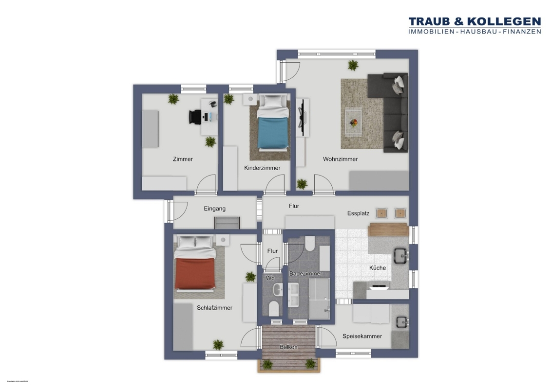 Das Herzstück der Wohnung bildet der offene Essbereich mit angrenzender Küche – ein einladender Mittelpunkt des Alltags, an dem gemeinsames Kochen, Essen und Beisammensein selbstverständlich werden. Eine praktische Speisekammer direkt neben der Küche bietet zusätzlichen Stauraum für Lebensmittel und Haushaltsbedarf. Der separate Wohnbereich schafft zusätzlichen Rückzugsraum und bietet Zugang zu einem der beiden Balkone, die den Wohnkomfort erweitern.