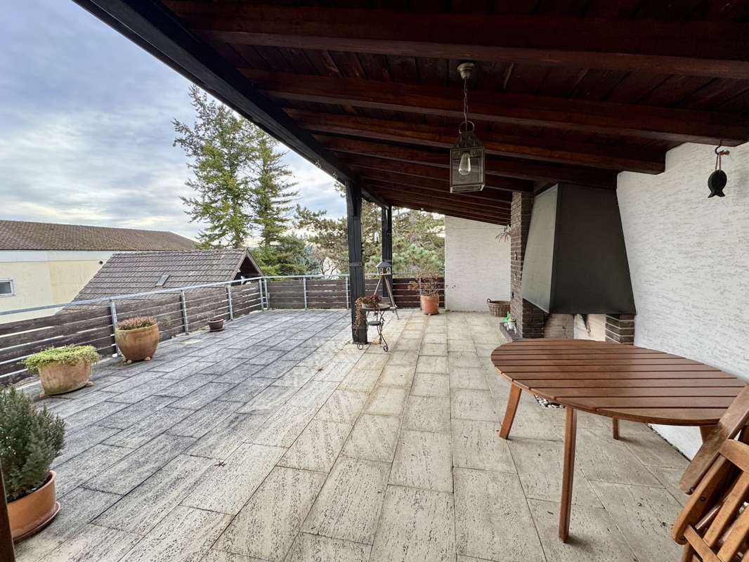• Ca. 50 m² große, teilweise überdachte Terrasse mit Kamingrill