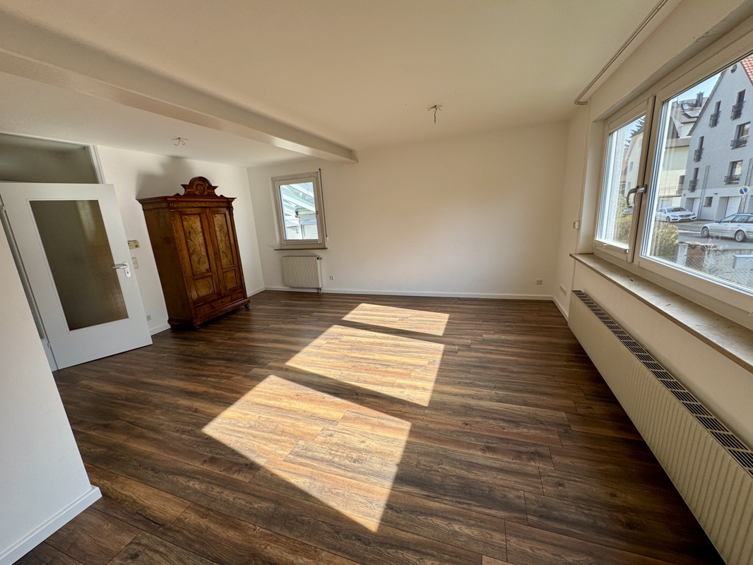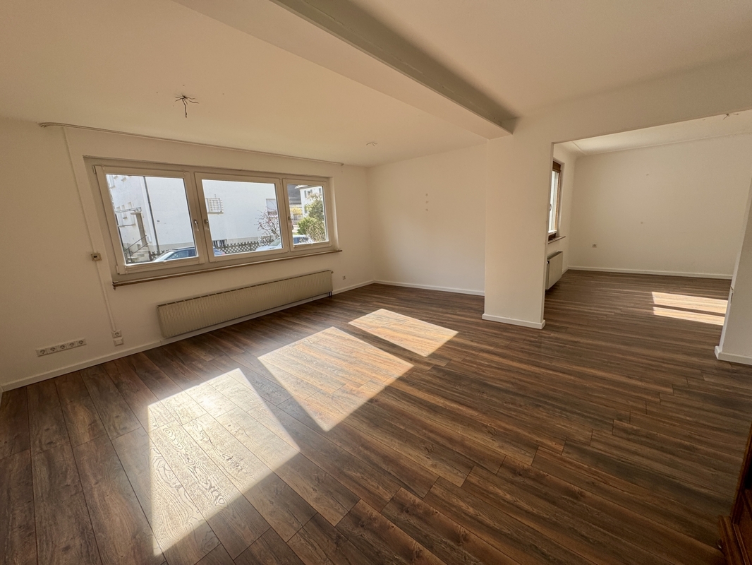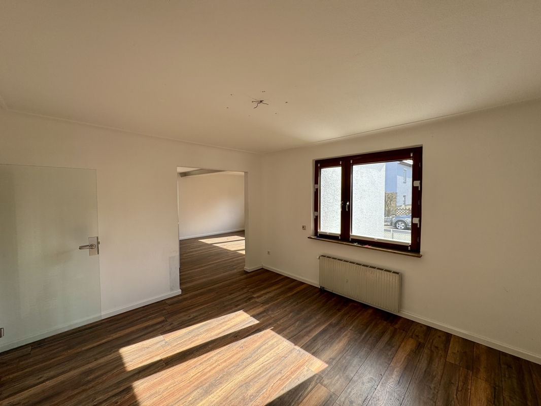 Das großzügige Wohn- und Esszimmer bildet den zentralen Wohnbereich des Hauses. Große Fenster sorgen für viel Tageslicht und schaffen eine angenehme Wohnatmosphäre – ideal für entspannte Stunden mit Familie und Freunden. Durch das Einziehen einer zusätzlichen Wand lässt sich dieser Raum problemlos trennen, sodass im Erdgeschoss insgesamt drei separate Zimmer entstehen.