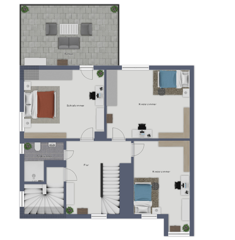 Obergeschoss – flexible Räume und sonnige Dachterrasse