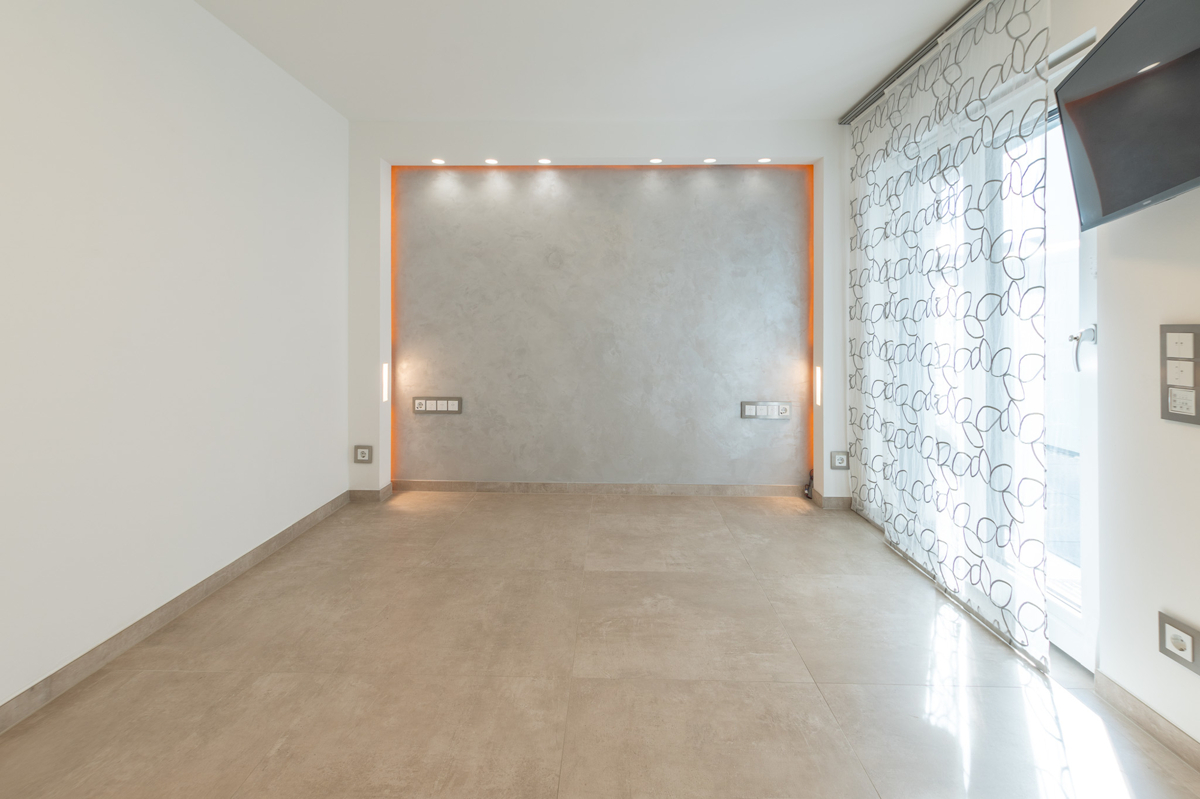 Das Wohnzimmer ist ein behaglicher Ort, der zum Entspannen einlädt. Hier können Sie sich zurücklehnen, den Einbau-Ethanol-Kamin genießen und Ihre persönliche Wohlfühloase gestalten. Das Schlafzimmer bietet Ruhe und Privatsphäre, um sich nach einem langen Tag zu erholen.
