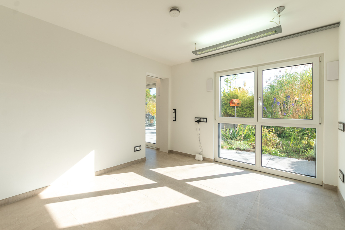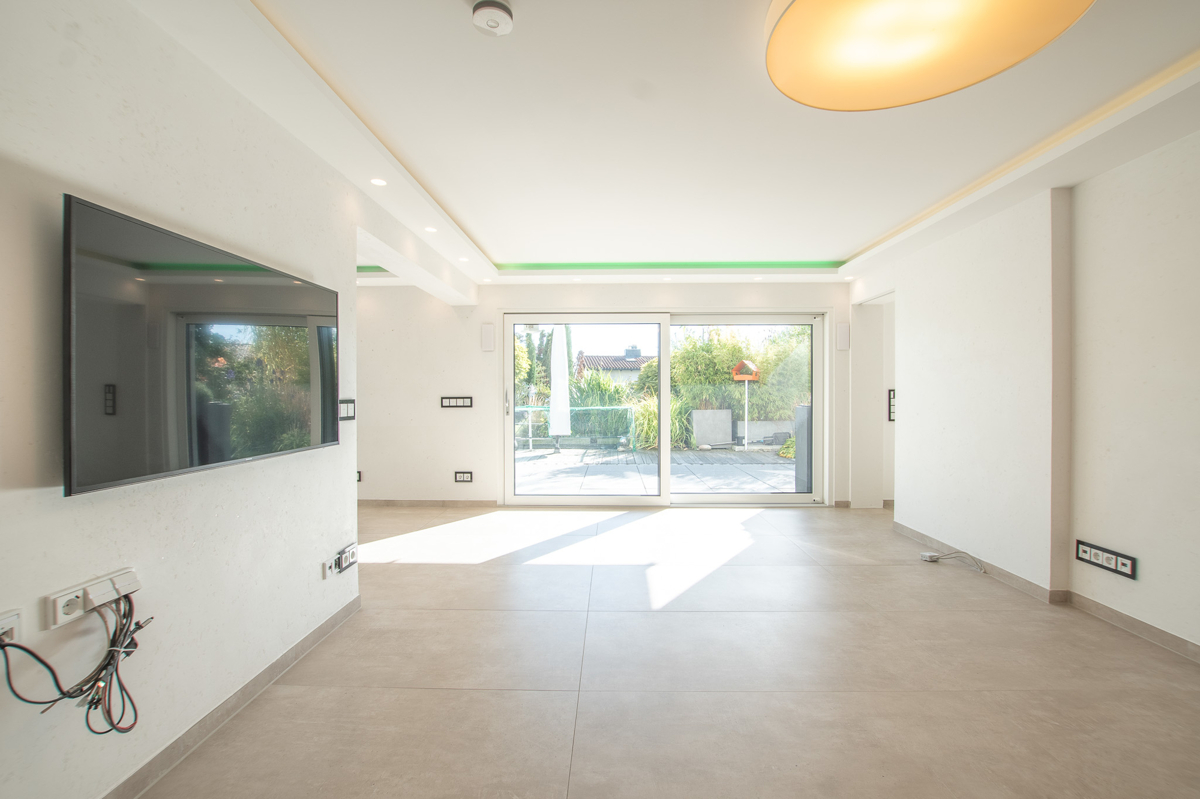 Die Immobilie ist mit einer durchdachten Busch-Jäger Smart-Home-Steuerung ausgestattet, die elektrische Rollläden, Fußbodenheizung, exklusive Busch-Jäger CARAT Schalter- und Steckdosenserie, sowie integrierte Deckenlautsprecher und ein Video-Türsprechanlage mit Smartphone-Anbindung umfasst. Ein Airfox-Belüftungssystem und indirekte LED-Beleuchtung sorgen für ein angenehmes Raumklima und stimmungsvolles Licht.